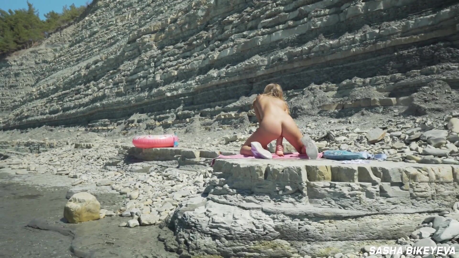 AWESOME KINKY NUDIST GIRL IN SUNGLASSES SUCKS & RIDES A HUGE DILDO IN PUBLIC BEACH - SASHA BIKEYEVA
