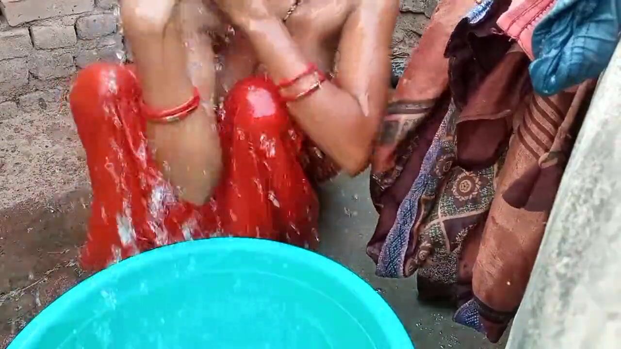 . Hot Indian bhabhi outdoor village me nahte hua