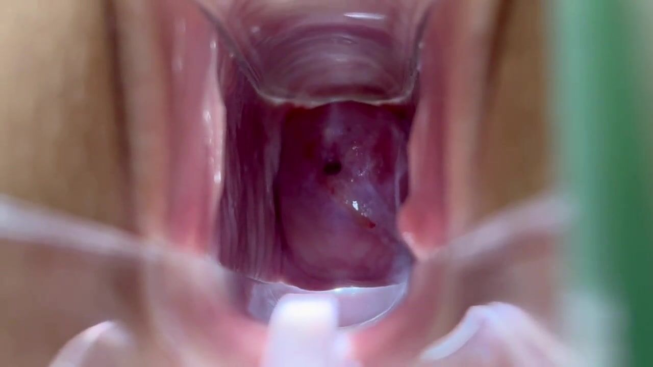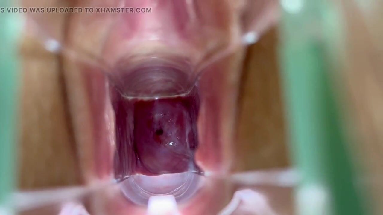 . Using a speculum and pulling my legs back I was able to get a very close up view of my cervix. The cervix is where most of the natural cum a woman produces comes out of during arousal. Watch as my cervix starts leaking juice out of it. If you like pussy gaping and deep views inside the pussy this is your video. Hope you enjoy!