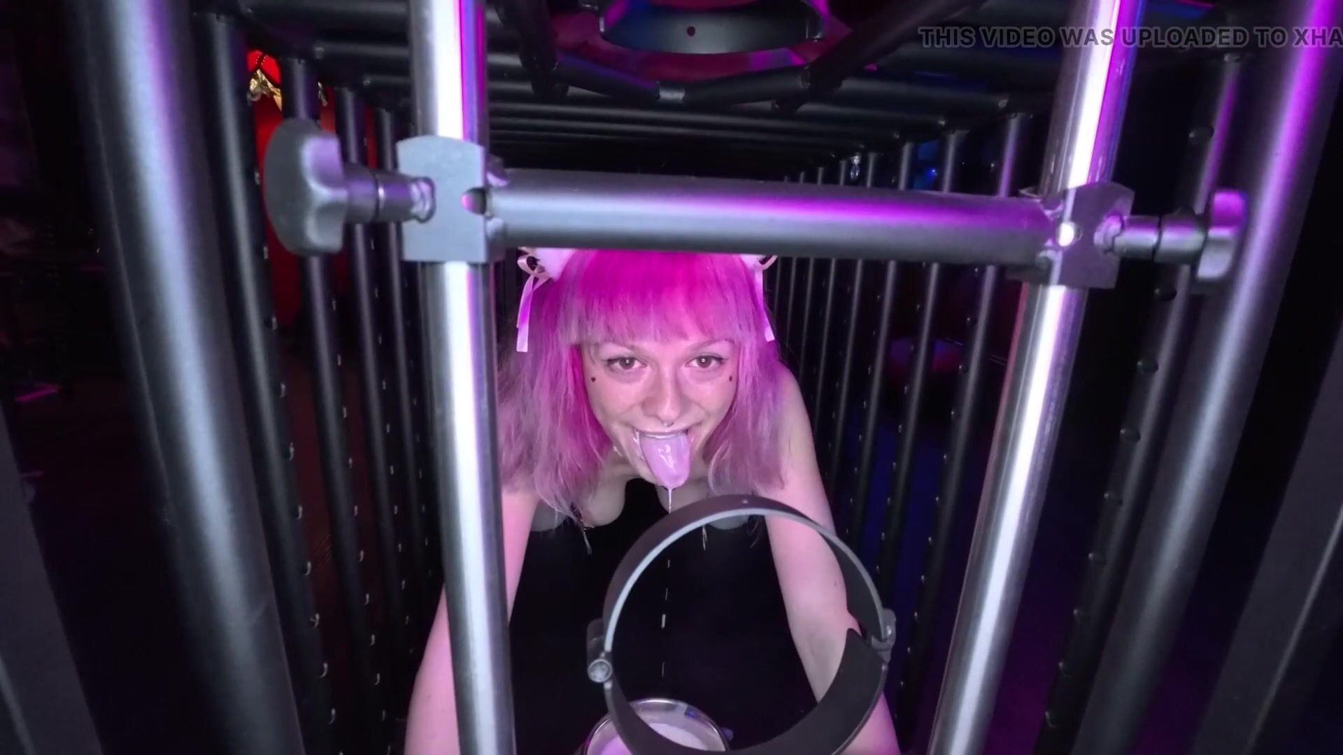 A INEXPERIENCED BITCH IS FUCKED IN HER CAGE