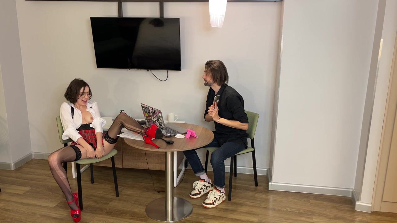 YOUNG SECRETARY WITH HIGH HEELS & BLUE EYES SQUIRTS ALL OVER OFFICE FLOOR WITH HER BOSS'BSPERK